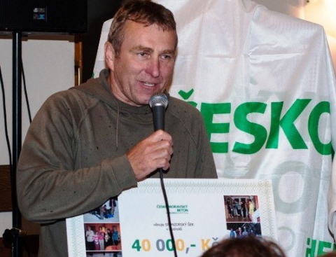 Patron daru Ing. František Papež (2. místo) předal šek na 40.000 Kč dětskému domovu v Humpolci.